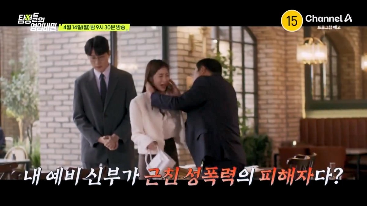 아니나 다를까 의뢰인은 예비신부가 본인의 아버지와 만나 대화하는 동안 어딘가 불편하고 긴장하는 듯한 느낌을 받았다. “장인어른이 수상하다”는 의뢰인의 발언에 유인나는 “뭐지?”라며 미심쩍어했고, 카이도 “싸한데…”라며 긴장했다. 의뢰인은 예비신부가 ‘근친 성폭력’의 피해자가 아닌지 의심하며 탐정 사무실에 조사를 부탁했다. 그리고 이 사연에서는 파면 팔수록 끔찍한 예비 장인어른의 실체가 드러나 모두를 경악하게 만들었다. 예고편에서는 의뢰인의 예비 장인어른이 “다 알아버렸네?”라는 공포영화 뺨치는 발언을 던져, 카이를 비롯한 모두를 술렁이게 했다.