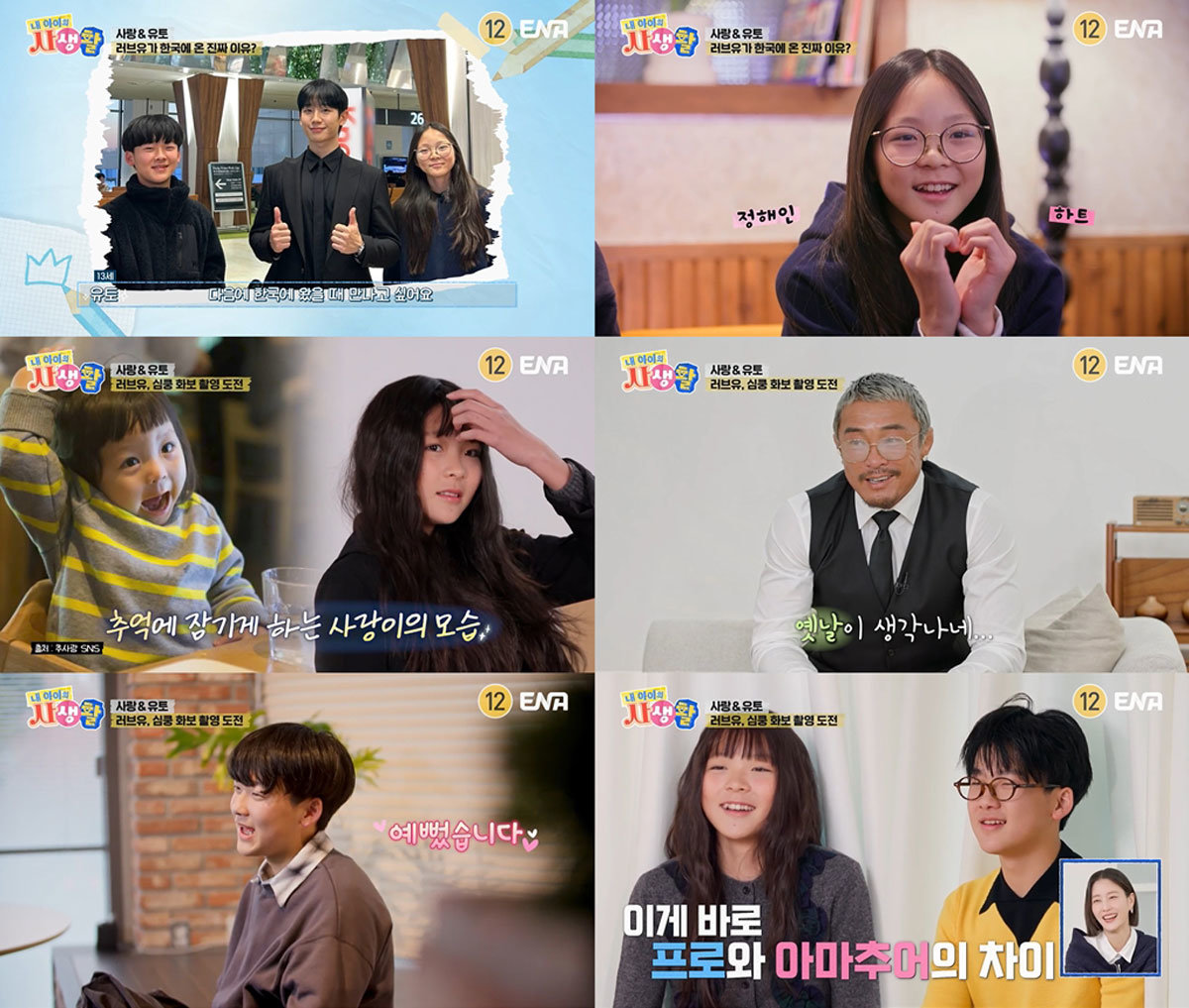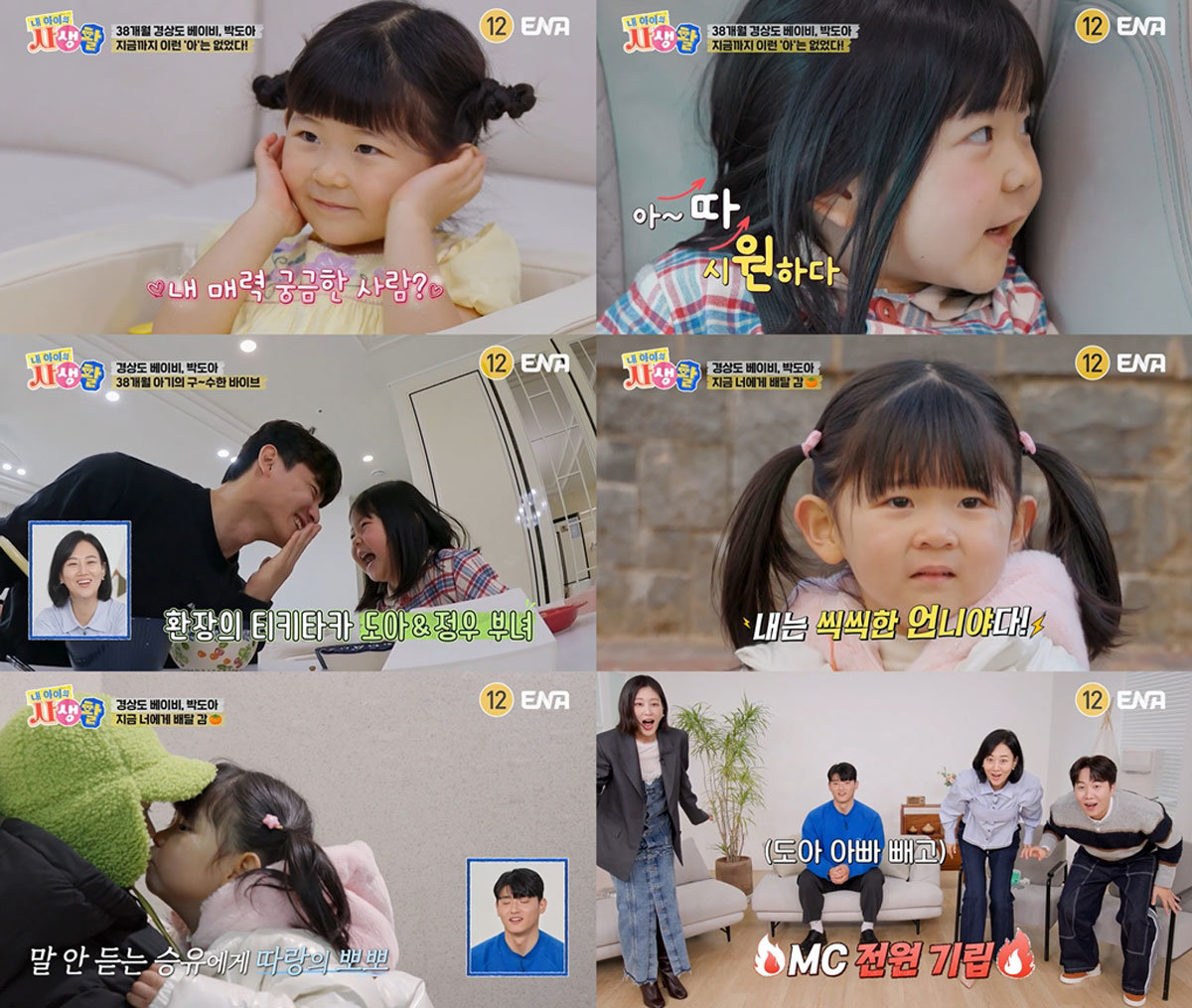 13일 방송된 ENA 일요예능 ‘내 아이의 사생활’(이하 ‘내생활’) 16회에서는 화보 촬영을 위해 한국을 찾은 사랑이와 유토, 구수한 사투리를 구사하는 38개월 경상도 베이비 도아의 생애 첫 심부름 이야기가 그려졌다.