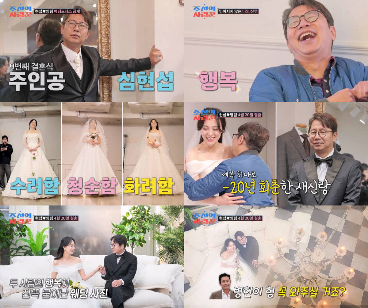 그러나 막상 영림의 첫 번째 웨딩드레스가 공개되자 큰 함박웃음을 지으며 단숨에 달려 나가 기쁨을 온몸으로 표현했다. 두 번째 드레스까지 본 심현섭은 “꿈 속인가 싶기도 하다”며 ’눈치 제로‘의 발언들 속에 숨겨진 진심을 드러냈다.