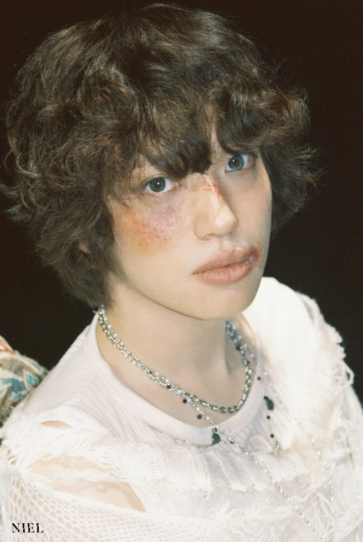 사진 속 니엘은 상처 입은 얼굴과 깊은 눈빛으로 시선을 끌었다. 소년미에 아련함을 더한 표정은 순정만화 속 한 장면을 연상케 했다.