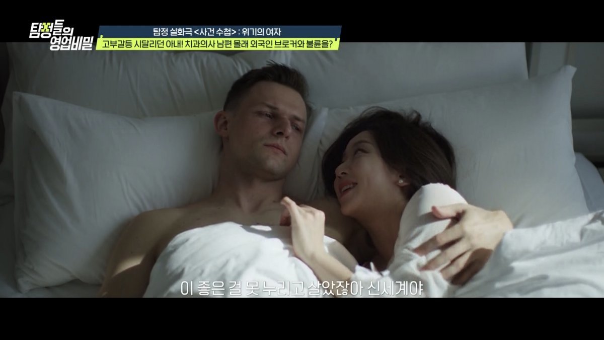 실화 재구성 코너인 ‘사건 수첩’에는 “며느리가 치과의사인 아들 몰래 외국인과 바람을 피운다”라는 시어머니의 의뢰가 접수됐다. 아들은 “아니다”라고 해명했지만, 시어머니는 며느리의 불륜을 확신하고 있었다. 탐정단의 조사 결과 아내의 불륜 의심 상대는 아들이 고용한 외국인 의료 관광 브로커로 밝혀졌다.
