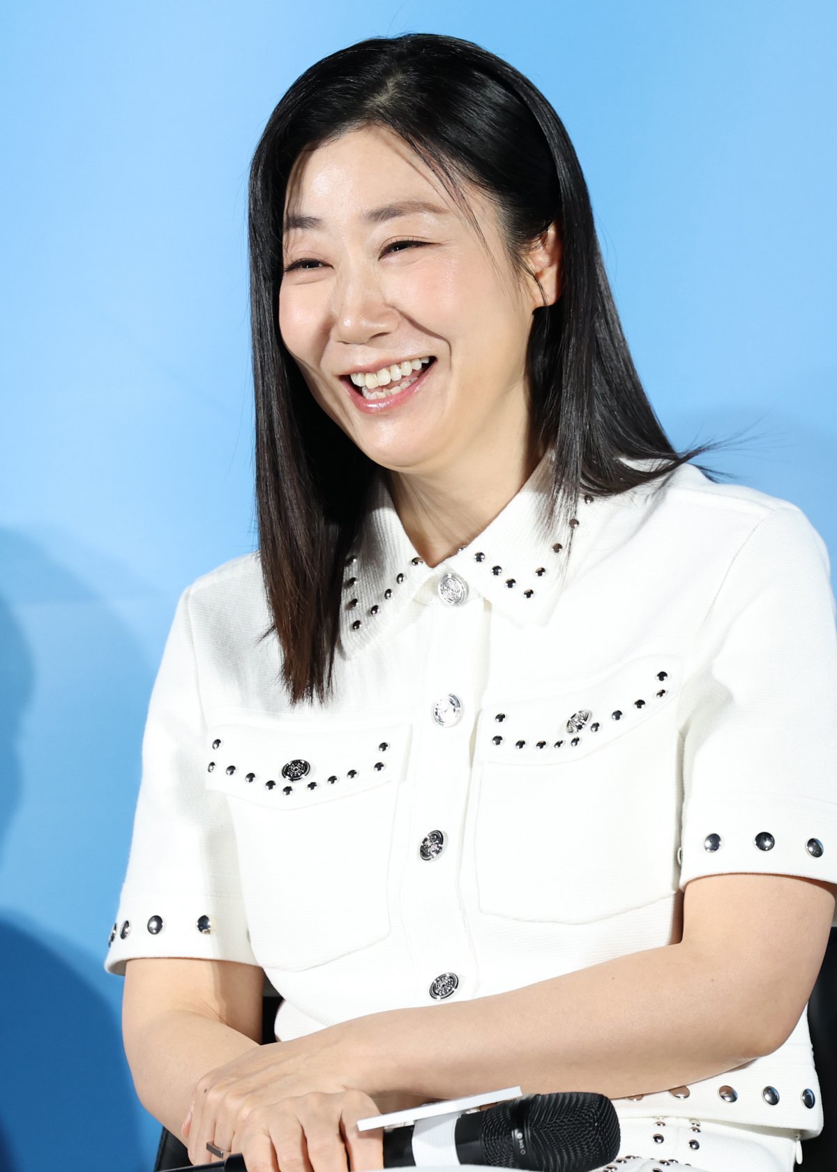 (서울=뉴스1) 권현진 기자 = 배우 라미란이 12일 오전 서울 광진구 롯데시네마 건대입구점에서 열린 영화 ‘하이파이브’ 제작보고회에 참석해 캐릭터 소개를 하고 있다. ‘하이파이브’는 장기이식으로 우연히 각기 다른 초능력을 얻게 된 다섯 명이 그들의 능력을 탐하는 자들과 만나 벌어지는 이야기를 그린 코믹 액션 활극이다. 2025.5.12/뉴스1