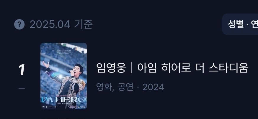 가수 임영웅의 콘서트 실황 영화 ‘아임 히어로 더 스타디움’이 4월 OTT 콘텐츠 통합 랭킹 1위를 차지하며 2개월 연속 정상을 지켰다.OTT 콘텐츠 통합 검색 플랫폼 키노라이츠에 따르면 ‘아임 히어로 더 스타디움’은 4월 월간 기준 전체 콘텐츠 중 가장 높은 검색량과 관심도를 기록하며 1위에 올랐다. 지난 3월에 이어 두 달 연속 왕좌를 지킨 것이다.