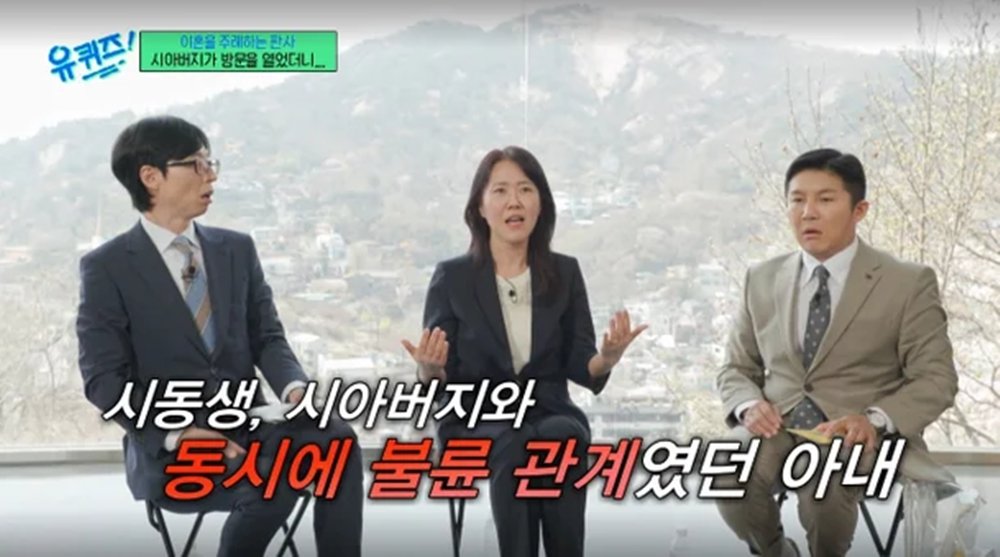 정현숙 판사는 “알고 보니 며느리는 이미 시아버지와도 불륜 관계였다”라며 “시아버지도 자기 원죄가 있기 때문에 말을 하지 못 했다. 그런데도 또다시 아내가 시동생과 불륜을 저지르다 남편에게 발각되고는 아내는 아이들도 버리고 가출했다. 그래서 남편이 이혼 소송을 제기했다”고 말해 놀라움을 자아냈다.