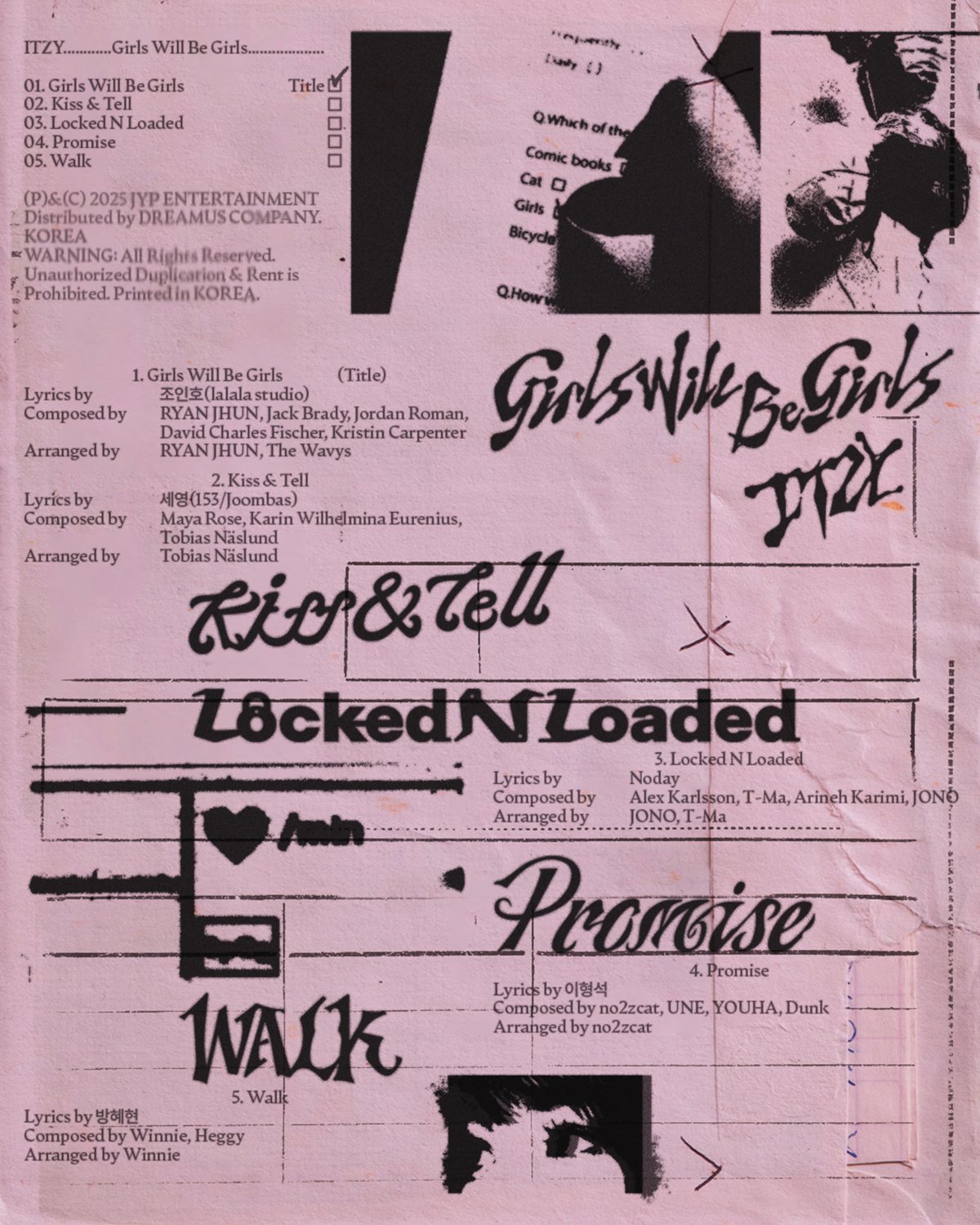 JYP엔터테인먼트는 5월 26일 오전 공식 SNS 채널에 ITZY 새 앨범 ‘Girls Will Be Girls’의 트랙리스트를 게재했다.