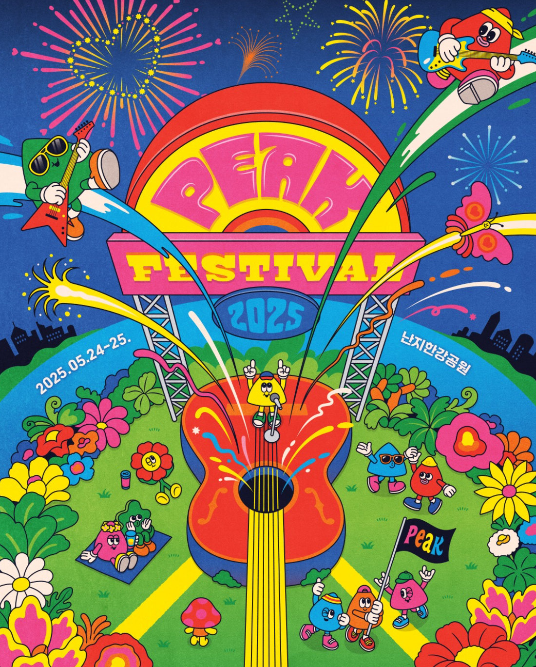 지난 5월 24일과 25일 양일에 걸쳐 난지한강공원에서 ‘피크 페스티벌 2025’가 진행됐다. 2년 전 폭우와 흙탕물 범벅 바닥은 흐르는 기억 너머로. 올해에는 날씨 요정도 도운 듯 봄과 여름의 경계에 선 최고의 축제가 펼쳐졌다.