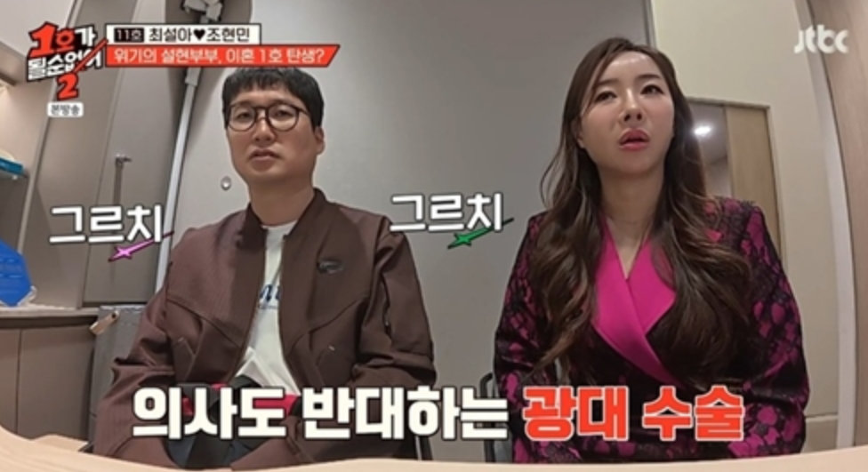 이가운데 “하루 하루가 이혼 숙려 상태”라며 위태로운 일상을 공개한 조현민과 최설아. 유력한 이혼 1호 부부 조현민과 최설아는 아침부터 성형 진실 공방 논쟁을 벌이며 아슬아슬한 기류를 형성했다. 그런 와중에도 두 사람은 언제 큰 소리를 냈냐는 듯 곧바로 콩트가 가미된 자기 관리 모드에 돌입, 영락없는 개그맨 부부임을 과시했다.