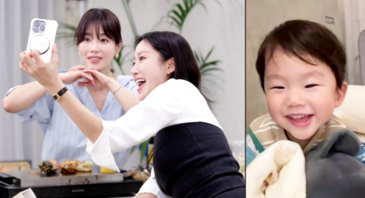 이어 전혜빈은 아들에게도 이 장면을 보여주자며 영상통화를 걸었다. 2019년 치과의사 남편과 결혼한 전혜빈에게는 31개월 귀염둥이 아들 태오가 있다. 태오가 방송에 공개되는 것은 이번이 처음이라고. 태오의 애교 넘치는 눈웃음에 기은세의 눈에도 꿀이 뚝뚝 떨어졌다. 이어 “엄마 사랑해요”, “이모 우리집에 놀러 오세요” 등 깜찍한 말로 전혜빈과 기은세를 사르르 녹였다.