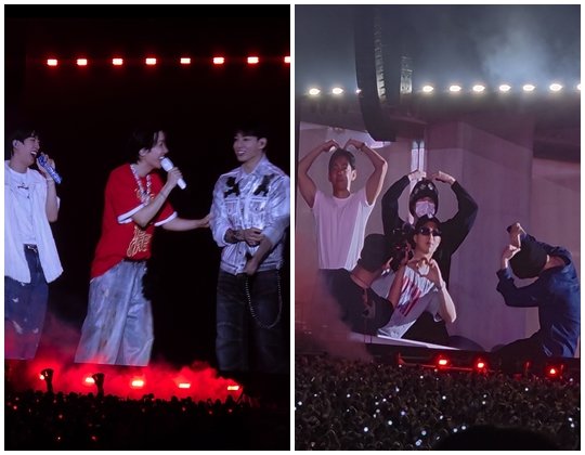 제이홉은 공연장을 찾은 RM과 뷔, 지민, 슈가 등 객석을 지킨 멤버들도 현장 카메라를 통해 소개해 눈길을 끌었다. 이들 방문에 “사랑해”라며 고마움을 표시한 제이홉에 멤버들은 각자 하트 동작을 꺼내 보여 객석의 큰 환호성을 사기도 했다.
