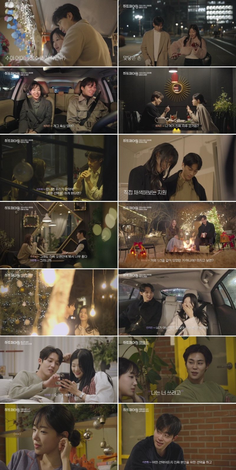 지민X제연은 ‘1차 계약 연애’ 이후 오랜만에 서로를 마주했다. 전날 밤 자신의 마음에 완전한 결정을 내린 제연은 와인 한 잔을 들이켠 뒤 지민X수아가 찍은 ‘네 컷 사진’에 그간 볼 수 없던 질투를 가동하는가 하면, ‘크리스마스 이브 데이트’ 시작 직전 지민과 엇갈렸던 사태에 대해 “(상대가) 오빠인 줄 알고 진짜 반가웠어”라고 말하며 진심을 표현하기 시작했다. 이후로 두 사람은 끊이지 않는 ‘티키타카’ 대화를 이어 나간 뒤, 트리 앞에서 기념사진을 촬영하며 귀여운 눈맞춤을 나눴다. 더불어 우산 하나를 나눠 쓴 채 번화가를 걷던 중, 지민은 “난 늘 너였어, 제연아”라며 여전한 직진 고백을 감행하기도 했다. 두 사람은 ‘페어링하우스’에 돌아온 뒤에도, “짜장라면이 먹고 싶다”라는 제연에게 지민이 직접 짜장라면을 끓여주면서, 둘만의 야식을 편안하게 즐기는 모습으로 ‘찐 연인’의 바이브를 자아냈다.