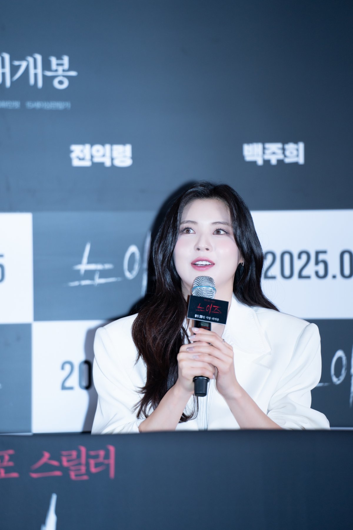 16일 서울 강남구 메가박스 코엑스점에서 열린 언론·배급시사회에서 ‘노이즈’를 택한 이유에 대해 “대본이 주는 힘이 컸고 층간소음이라는 소재가 매력적이었다”고 말했다.