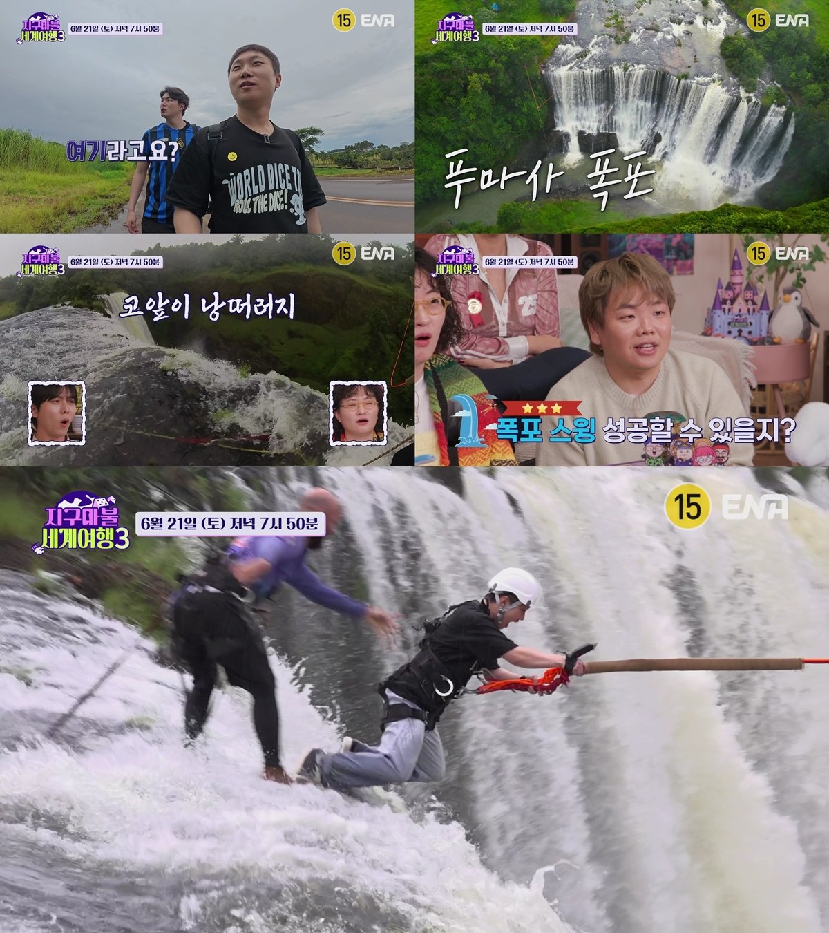 21일 저녁, ENA ‘지구마불 세계여행3’ 빠니보틀과 신승호가 브라질의 자이언트 폭포 스윙에 도전하는 ‘역대급 순간’이 공개된다.