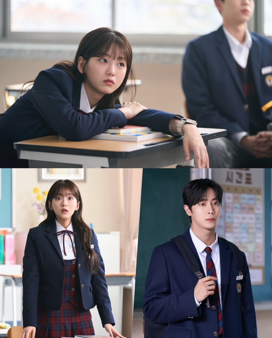 박성아, 배견우의 설레는 재회도 포착됐다. 먼저 무복을 벗고 평범한 고등학생으로 돌아간 박성아의 모습이 흥미롭다. 학생과 천지선녀를 오가며 이중생활 중인 박성아. 책상에 엎드려 졸음과의 싸움을 벌이던 그를 벌떡 일어서게 만든 사람은 다름 아닌 ‘전학생’ 배견우다. 천지선녀 법당에 거꾸로 들어선 것도 모자라 마음까지 빼앗아버린 배견우의 등장에 눈이 휘둥그레진 박성아와 달리, 차분하다 못해 차가운 배견우의 눈빛이 눈길을 끈다.