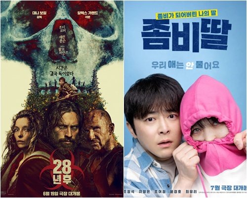 무시무시한 ‘좀비 무리’가 올여름 잇달아 극장을 습격한다. 섬뜩한 비주얼의 잔혹한 할리우드 좀비 영화 ‘28년 후’와 코미디를 무기로 내세운 색다른 충무로 좀비 영화 ‘좀비딸’이 그 주인공이다.