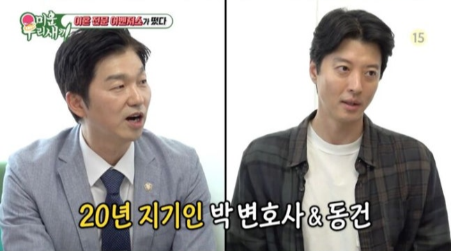 자신을 ‘톱스타 이혼 전문 변호사’라고 소개한 박민철은 김희철의 “진짜 톱스타 맡아봤냐”는 질문에 “이동건. 이동건이면 톱이지”라고 말해 웃음을 자아냈다. 이에 이동건은 “이혼한 지는 5년 정도 됐고 민철이랑은 20년 친구”라고 덧붙였다.