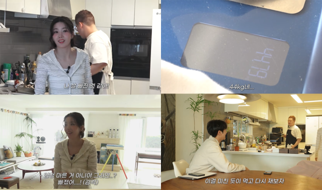 공개된 이미지 속 권은비가 체중계에 올라가자 44kg이라는 숫자가 찍혀 놀라움을 자아냈다. 권은비는 “살이 빠진 것 같다”라며 좋아하고 있다.