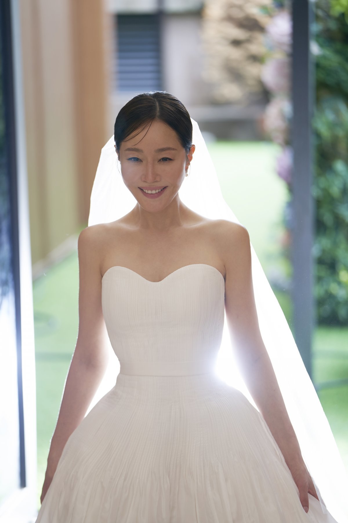 심플한 디자인이지만 미세한 주름 디테일과 완벽한 실루엣이 조화를 이루며, 광숙이라는 캐릭터의 단단함과 고운 내면을 고스란히 드러냈다. 베일과 부케, 헤어스타일 역시 절제된 우아함으로 전체적인 분위기를 더욱 풍성하게 만들었다.