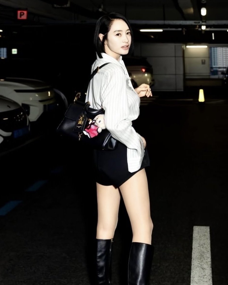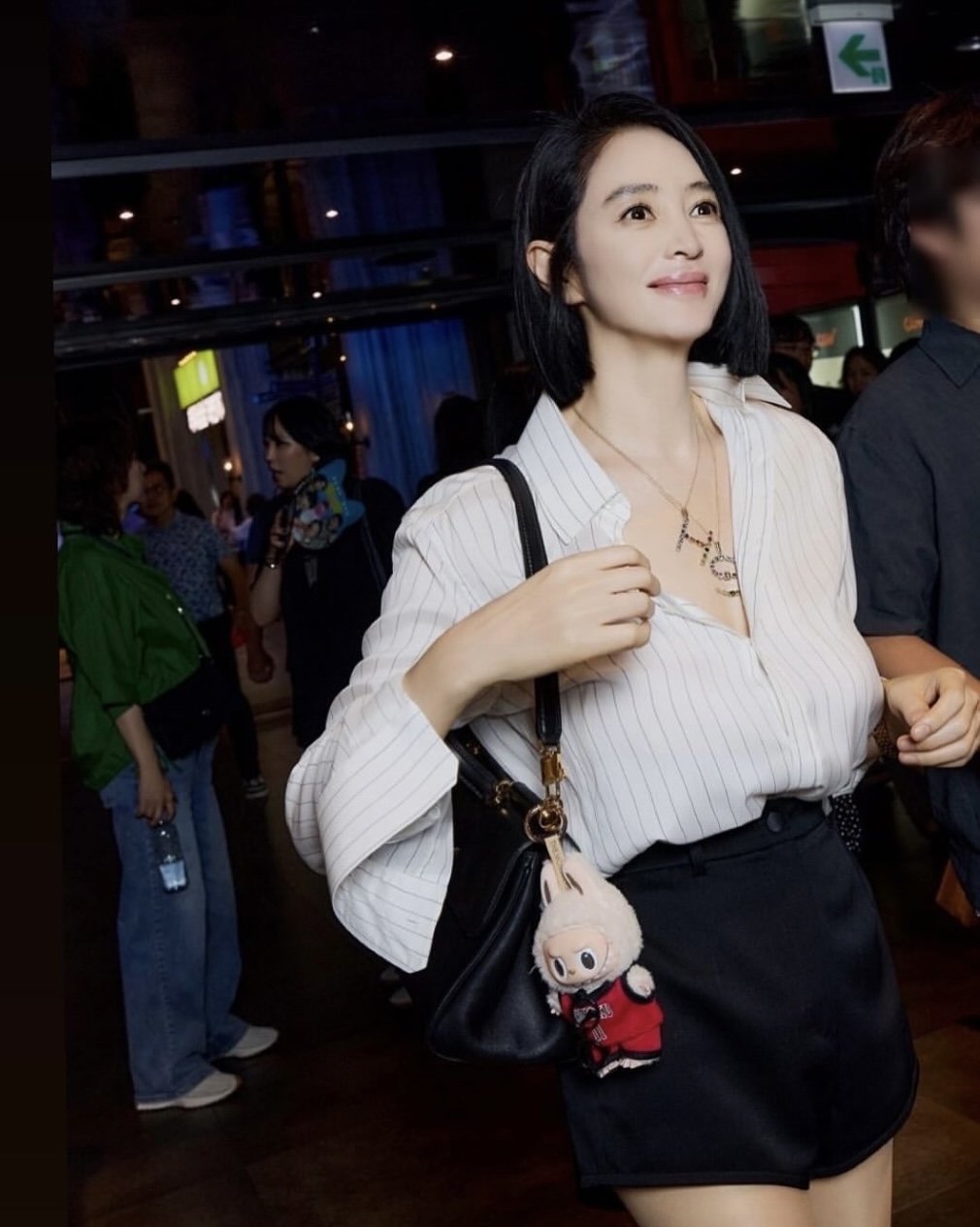 이날 김혜수는 흰색 스트라이프 셔츠에 블랙 한뼘 핫팬츠를 매치하고 무릎 위까지 올라오는 롱부츠를 신은 스타일링으로 시크한 매력을 자랑했다. 특히 블랙 토트백에는 레드룩을 입은 토끼 인형 ‘라부부’가 달려 있어 반전 귀여움까지 더했다.