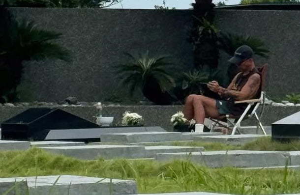 28일 각종 SNS에는 구준엽이 서희원의 묘 앞에서 의자를 놓고 앉아 영정 사진을 바라보는 모습부터 묘 근처를 치우는 모습 등이 담긴 사진이 유포되고 있다.