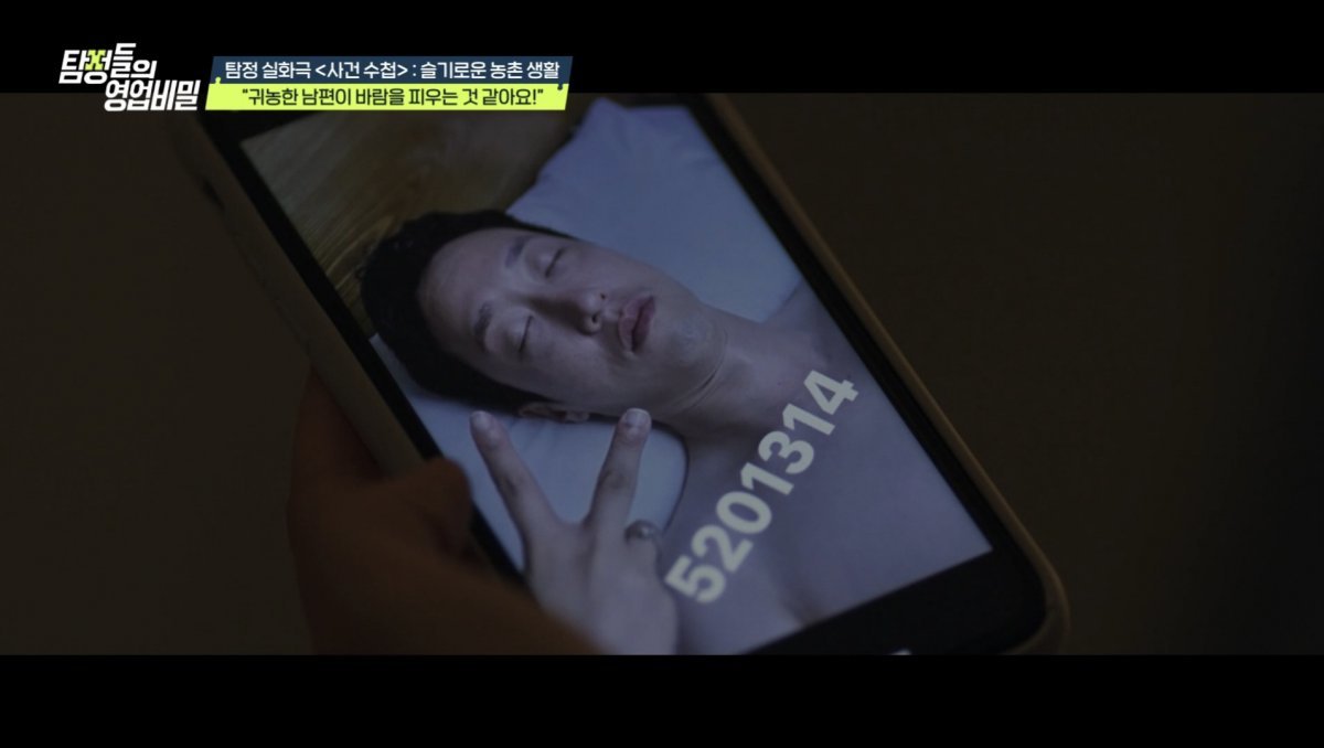 오늘(4일) 채널A ‘탐정들의 영업비밀’ 속 ‘사건 수첩’에서는 “귀농한 남편이 바람을 피우고 있는 것 같다”라는 여성 의뢰인이 등장한다. 의뢰인의 남편은 2년 전 회사에서 정리해고를 당한 뒤, 자신의 어머니가 운영하고 있는 농장 일을 돕겠다며 귀농을 했다. 그렇게 남편은 고향에서, 아내는 서울에서 떨어져 살며 주말 부부 생활을 하게 됐다. 그런데 귀농한지 1년쯤 지났을 무렵부터 남편은 바쁘다는 핑계로 연락이 잘 안되고, 서울에 오는 것도 뜸해졌다. 그러던 어느 날, 누군가 의뢰인의 SNS에 나체 상태로 잠들어있는 남편의 사진을 보내와 충격을 안겼다.
