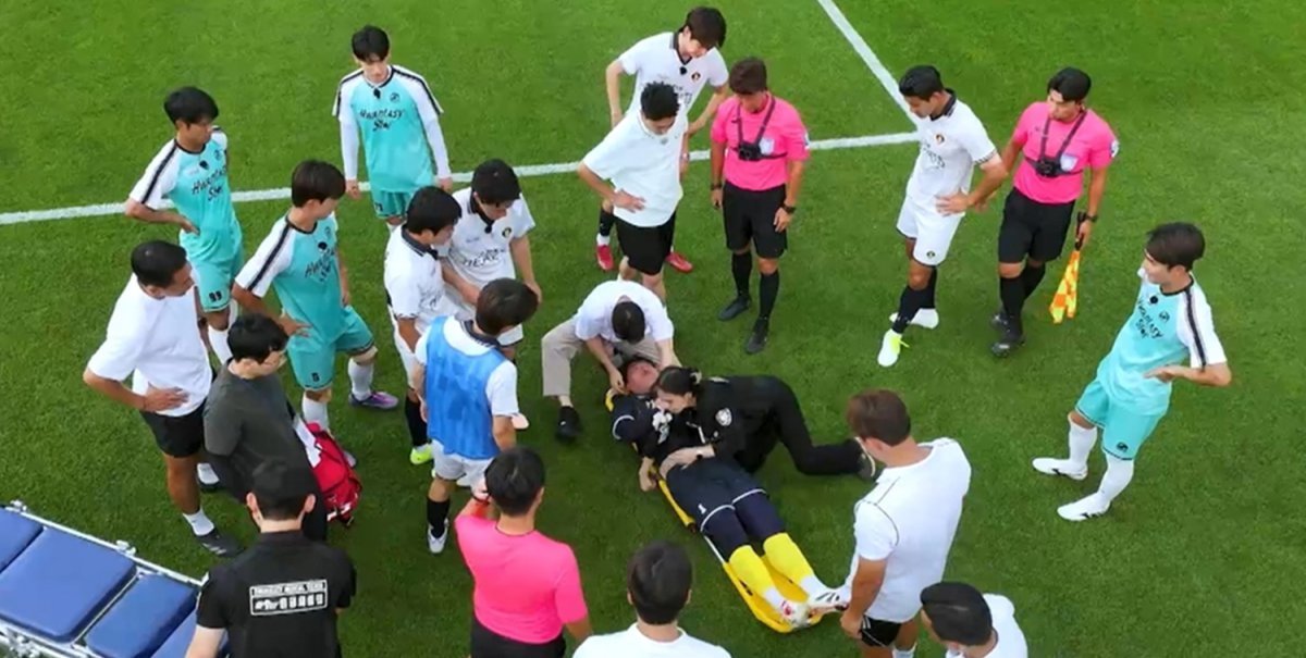 한시도 눈을 뗄 수 없는 용호상박 같은 공방전이 이어지는 가운데, 돌발 변수가 발생한다. 경기 도중 ‘라이온하츠FC’의 골문을 지키던 송하빈이 쓰러지는 사고가 발생한 것. 한동안 일어나지 못한 그는 결국 들것에 실려 나가며, 경기에 비상이 걸린다. 순간 경기장은 충격과 걱정에 휩싸인다. 갑작스러운 상황에 이용우를 포함한 몇 선수들의 눈시울도 붉어진다.