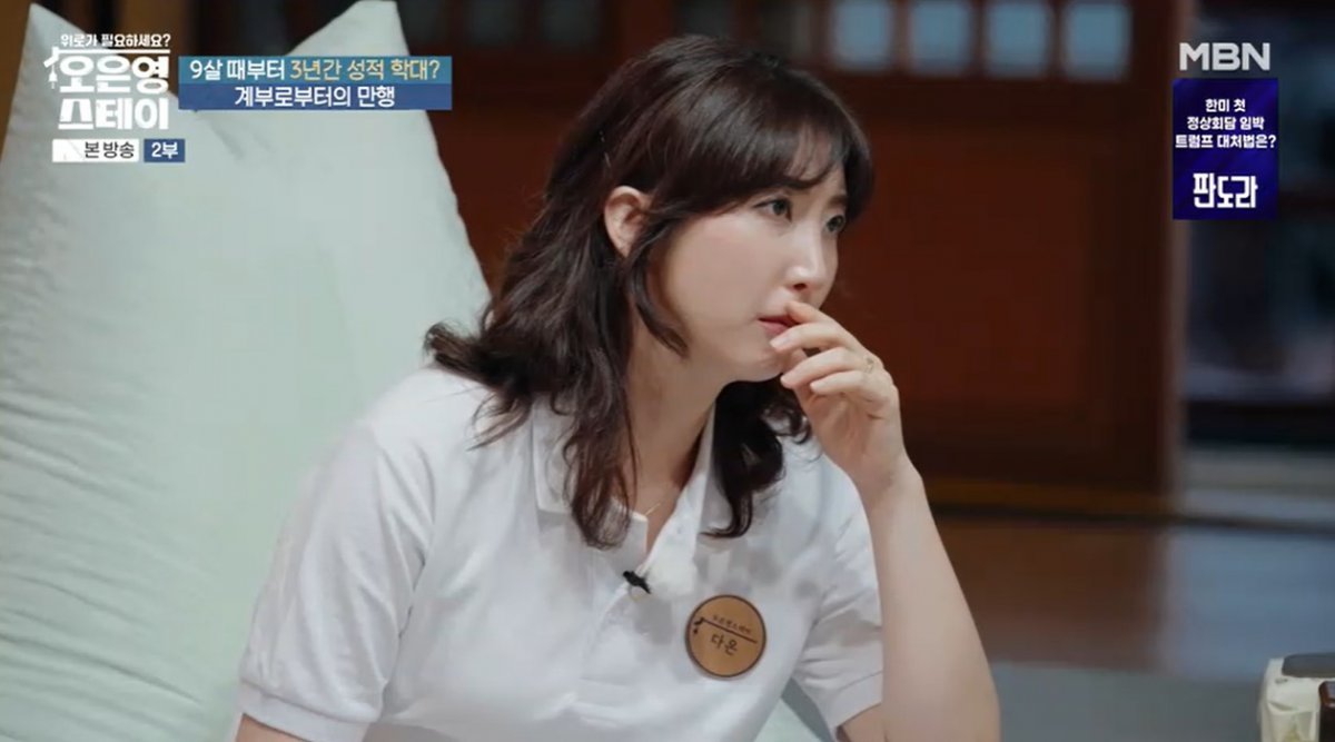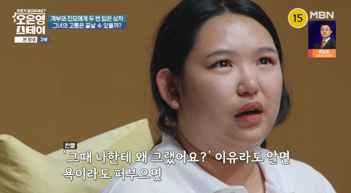 마지막으로 ‘천륜’이라는 참가자는 “엄마에게 큰 상처를 입고 절연했다”라며 9살 때부터 새아버지에게 성적 학대를 당했다는 용기 있는 고백을 꺼냈다. 참가자는 새아빠로부터 “치마를 입을 땐 속옷을 입지 말라, 아빠랑 같이 자야 한다”라는 말을 들었고 사진과 영상을 찍힌 경험을 털어놔 모두를 충격에 빠트렸다.