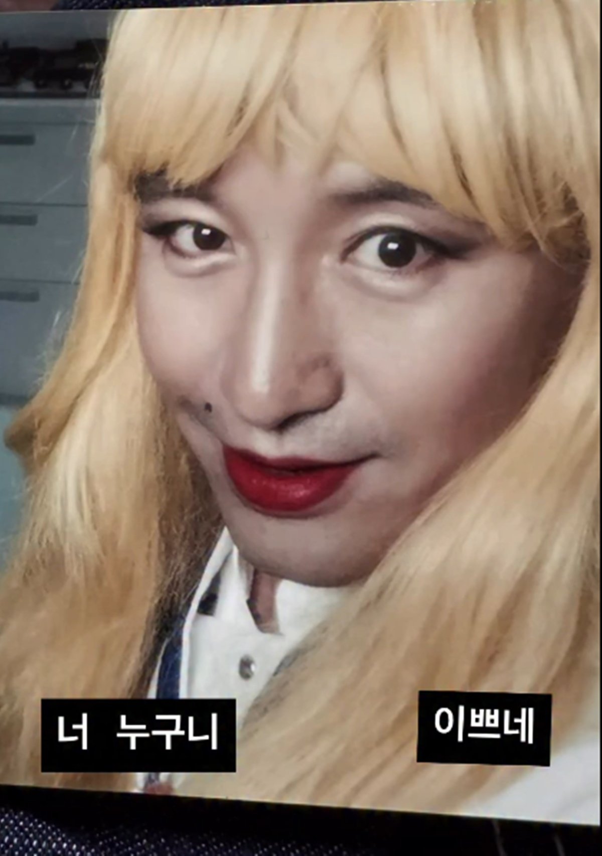 공개된 사진 속 홍석천은 금발 가발을 쓰고 붉은색 립을 바른 채 카메라를 바라보고 있다.