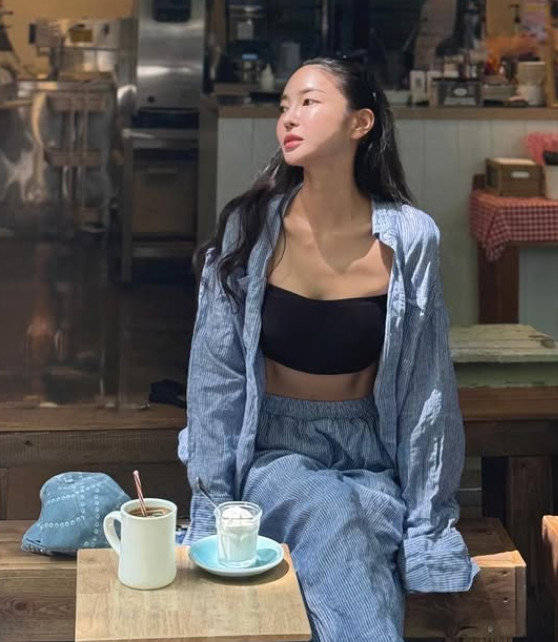 공개된 사진 속 김윤지는 카페에서 포즈를 취하고 있는 모습. 출산을 했다는 사실이 믿기지 않을 정도로 완벽한 몸매를 자랑해 눈길을 끈다.