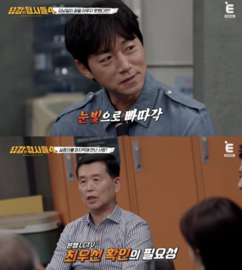 지난 15일 방송된 티캐스트 E채널 ‘용감한 형사들4’(연출 이지선) 47회에는 인천부평경찰서 형사과장 이광희 경정, 과학수사대(KCSI) 윤외출 전 경무관, 김진수 경감이 출연해 직접 해결한 수사 일지를 펼쳤다. 이날 방송에는 축구 국가대표 출신 김남일이 게스트로 출연했다.