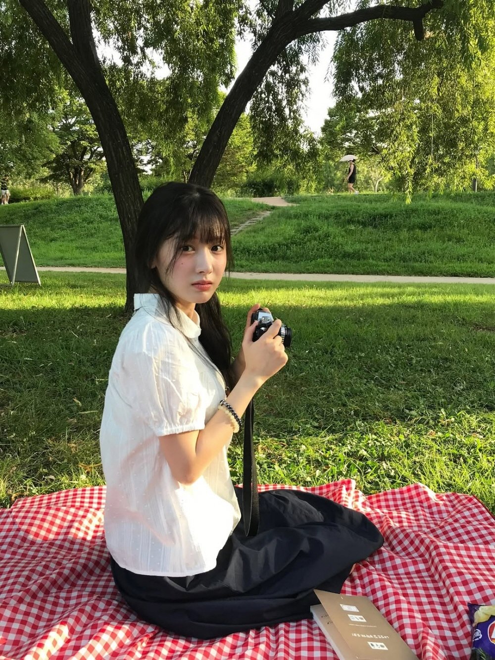 공개된 사진 속 송수이는 마치 공원 피크닉을 즐기듯 싱그러운 매력을 발산했다. 맑고 투명한 피부와 긴 히피펌 헤어, 그리고 발그레한 뺨 위 매력적인 점이 청순미와 신비로운 분위기를 동시에 자아낸다.