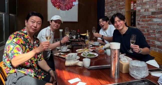 사진 속에는 김수로를 비롯해 김민종, 이종혁, 장동건 등이 함께 식사와 샴페인을 즐기는 모습이 담겼다.