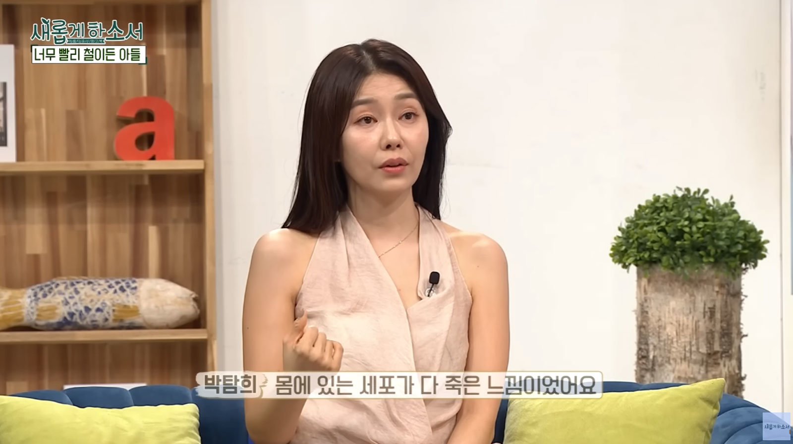 그는 “처음에는 초기라고 했는데 개복해보니 전이가 있었다. 큰 수술을 받고 항암치료까지 이어졌다”며 “항암을 받으면서 진짜 암 환자가 된 걸 실감했다. 주저앉아 울었다”며 눈물을 보였다. 이후 박탐희는 항암치료를 하는 하는 동안 느꼈던 고통에 대해 “몸에 있는 세포가 다 죽은 느낌이었다”고 회상했다.