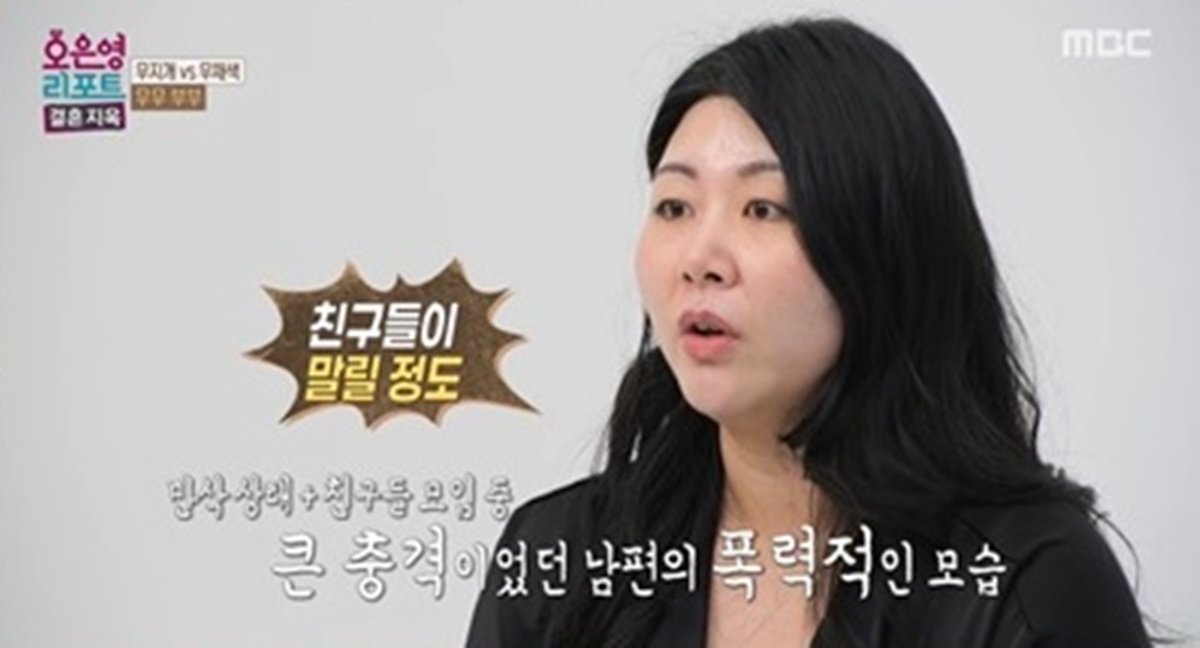 22일 오후 방송된 MBC ‘오은영 리포트-결혼 지옥’에서는 무지개빛 텐션의 아내와 무채색톤의 남편, 극과 극 텐션의 ‘무무 부부’의 이야기가 그려졌다. 만난 지 8개월 만에 서로에게 반해 결혼했다는 ‘무무 부부’는 보기만 해도 숨 막히는 갈등과 돌발 상황으로 방송 내내 시청자들에게 긴장감을 안겼다.