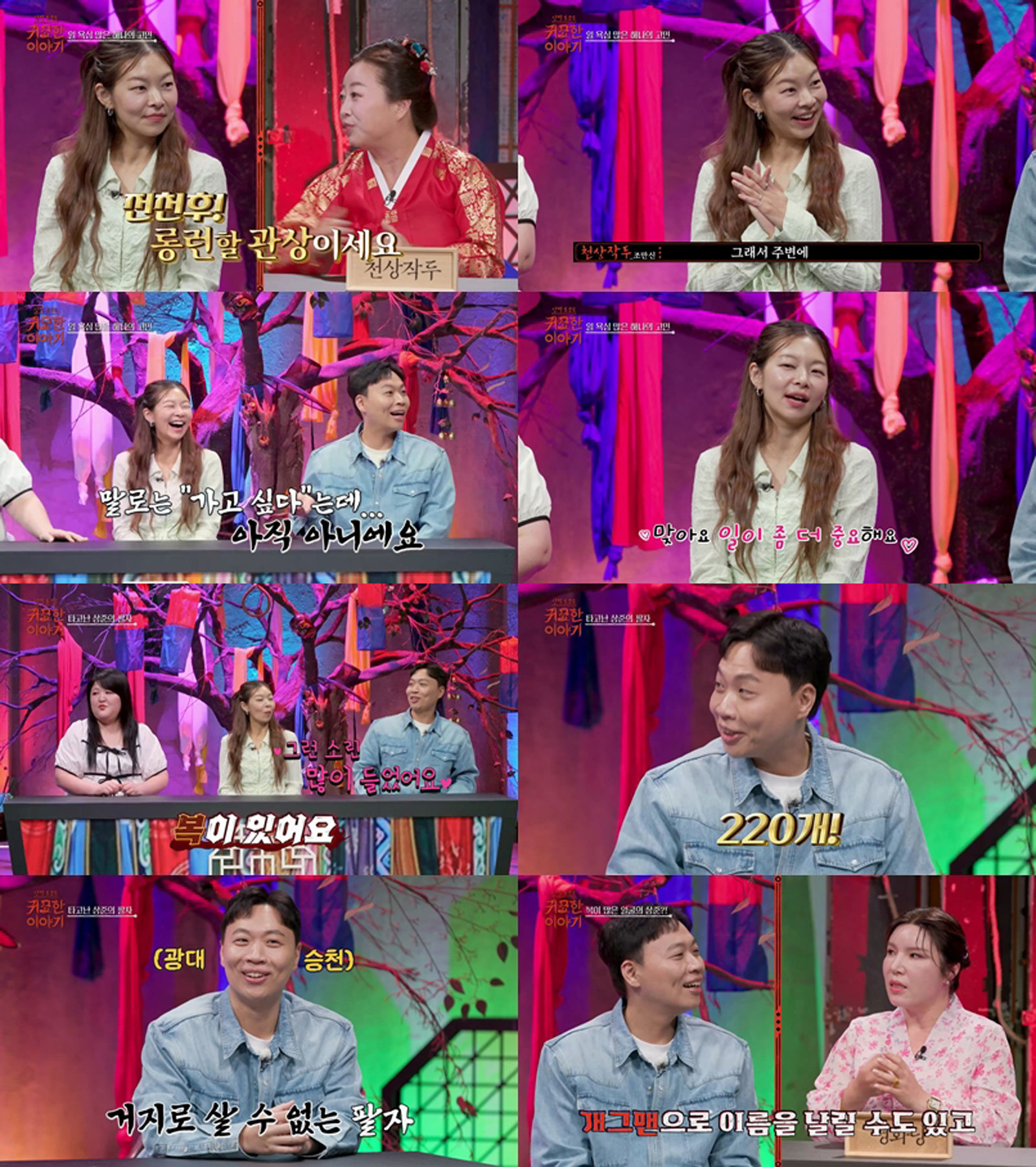 또 송해나는 “나이가 좀 있는데 계속 일을 할 수 있는지, 결혼을 하지 못하고 있는데 옆에 누군가 있는지”라고 질문했다. 천상작두는 “전천후, 장거리를 뛰는 것으로 보인다. 제일 중요한 것은 인복(人福)이 있다는 거다. 주변에 돕고자 하는 분이 연결해 줘서 자리를 엮어준다”고 자신의 생각을 전했다.