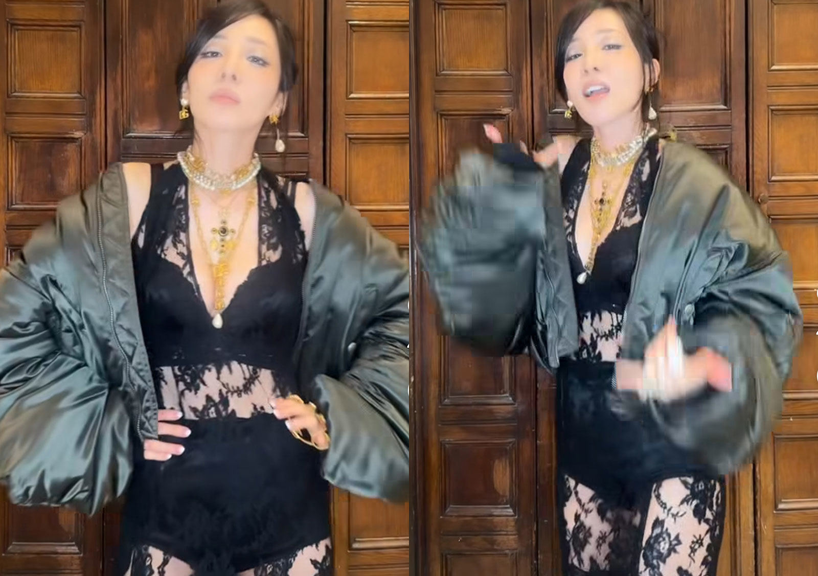 7일 산다라박은 자신의 SNS 계정에 영상을 하나 게재했다. 영상 속 그녀는 최근 돌체앤가바나 쇼에 참석했던 스타일링으로 ‘도마 챌린지’에 나섰다. 파격적인 시스루 룩이 시선을 사로잡는다.