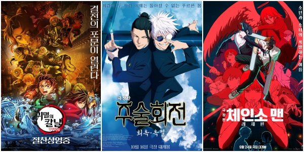 ‘일본 소년만화 3대장’이라고 불리는 ‘귀멸의 칼날’, ‘주술회전’, ‘체인소 맨’ 일명 ‘귀주톱’이 국내 극장가를 먹여살리고 있다. ‘귀멸의 칼날’과 ‘체인소 맨’에 이어 마침내 등판한 ‘주술회전’까지 출판 만화와 TV 애니메이션 시리즈를 기반으로 한 극장판 애니들이 잇따라 국내 박스오피스를 점령하며 하나의 ‘현상’으로 자리잡은 인상이다.