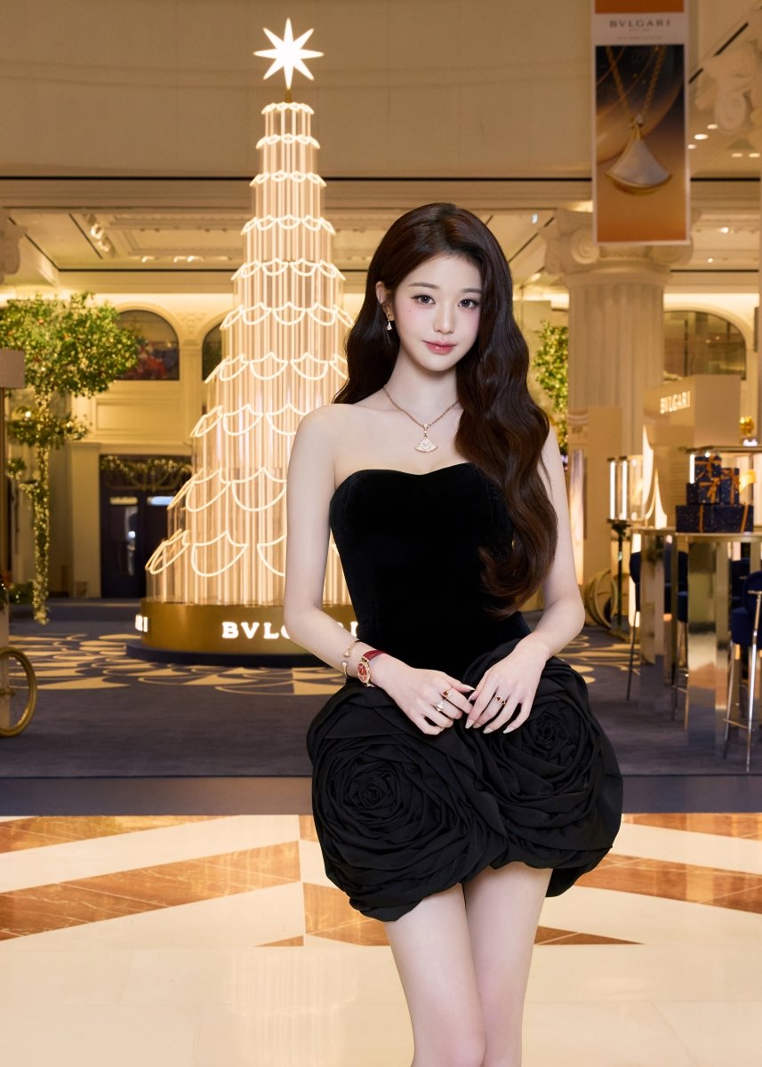 장원영은 우아함과 자신감을 지닌 현대적인 디바의 아름다움을 표현하는 컬렉션의 대표 제품들을 착용해, 팝업 테마와 조화를 이루는 감각적인 스타일링을 선보였다. 이날 그가 착용한 아이템은 총 1억4천만원을 훌쩍 넘는 것으로 알려졌다.