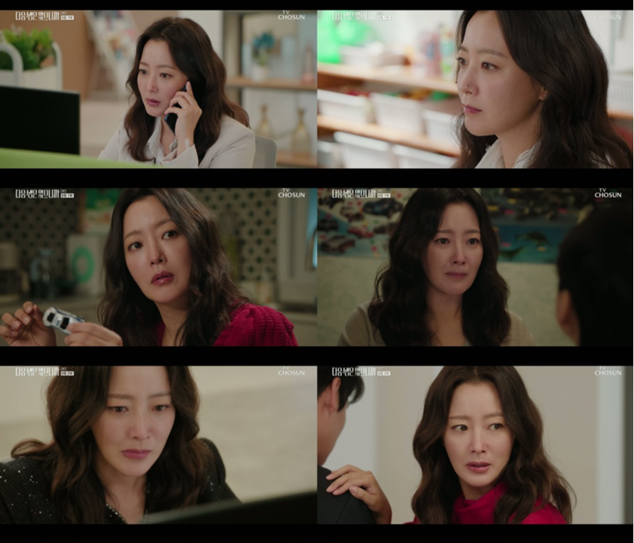9일 방송된 TV조선 월화드라마 ‘다음생은 없으니까’ 9회에서 조나정 역의 김희선은 가족을 위한 침묵과 아이에게 떳떳한 부모로 남기 위한 양심 사이에서 흔들리는 내면을 치밀하게 그렸다.