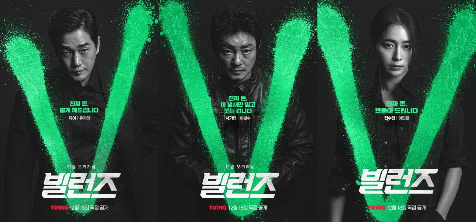 티빙 오리지널 ‘빌런즈’(연출 진혁 박진영 극본 김형준) 제작진은 11일 슈퍼노트 전쟁에 뛰어든 ‘빌런즈’의 숨 막히는 전쟁을 기대하게 하는 캐릭터 포스터와 1, 2회 예고편을 공개했다.