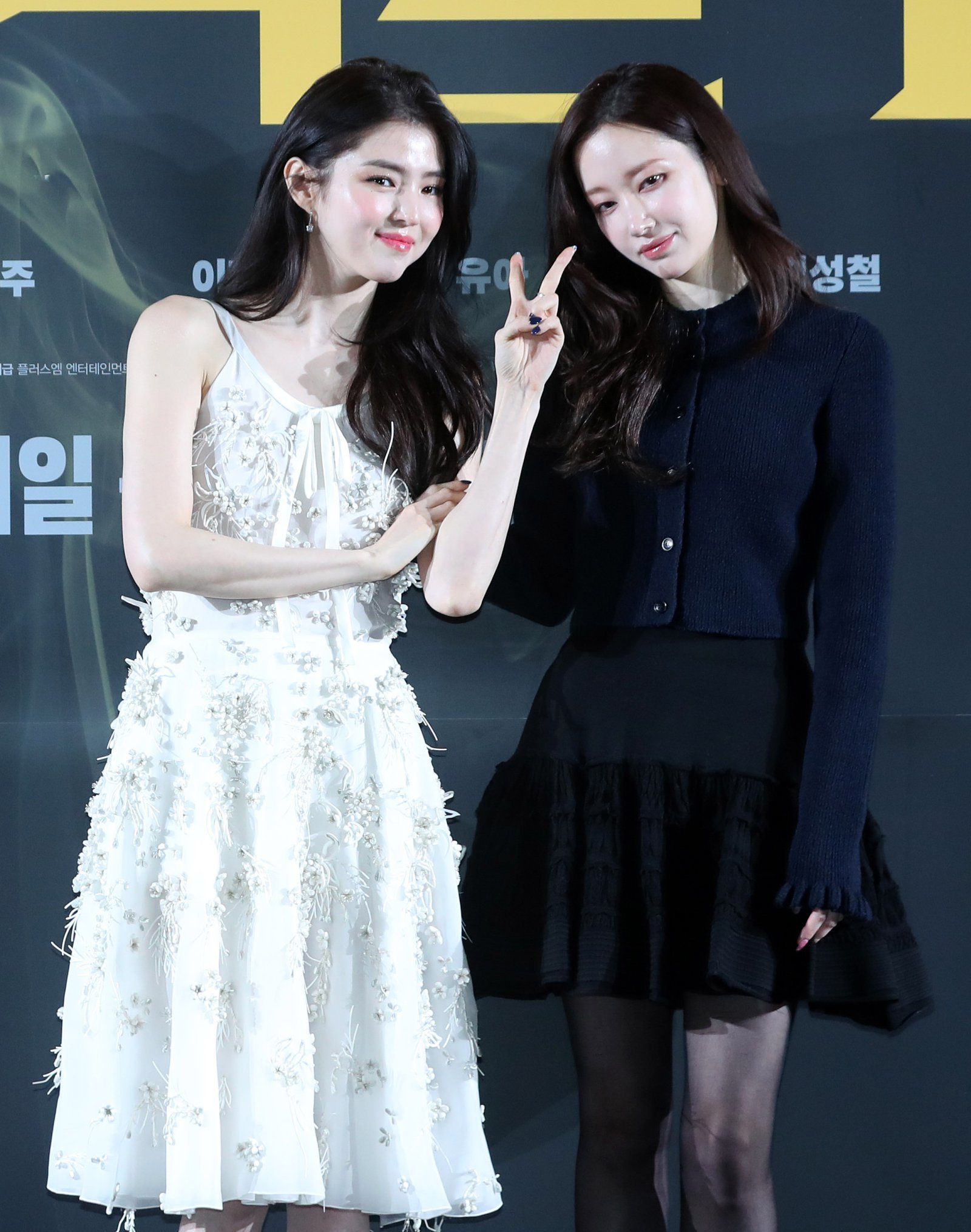 [서울=뉴시스] 김혜진 기자 = 배우 한소희(왼쪽), 전종서가 16일 오후 서울 강남구 메가박스 코엑스에서 열린 영화 ‘프로젝트 Y’(감독 이환) 제작보고회에 참석해 있다. 2025.12.16. jini@newsis.com