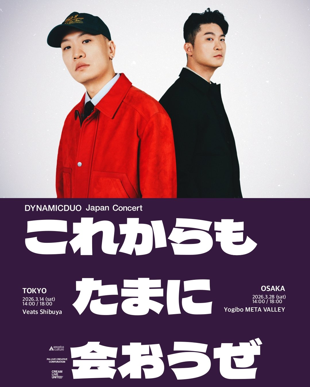 다이나믹 듀오(개코, 최자)는 오는 2026년 3월 14일 도쿄, 28일 오사카에서 총 4회에 걸쳐 단독 콘서트 ‘앞으로도 가끔 보자’를 개최한다.