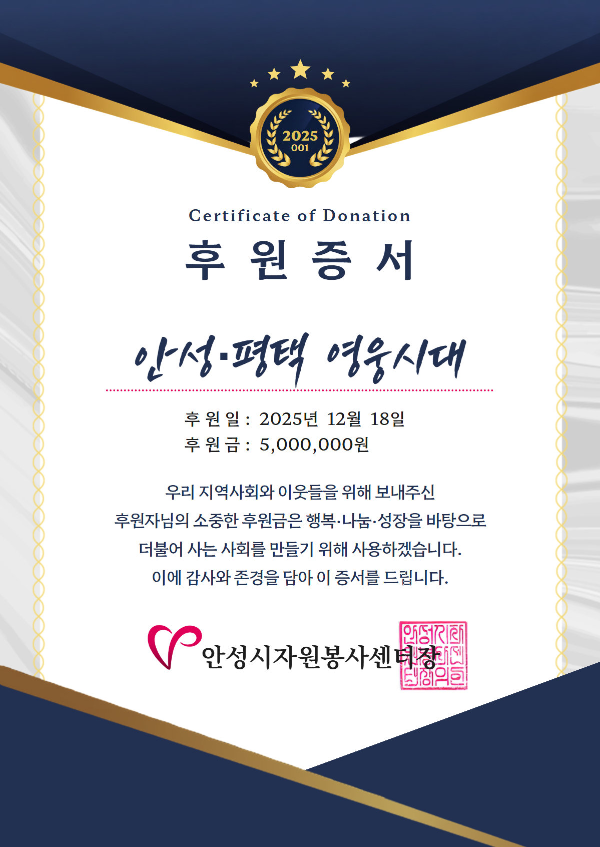 김동성 안성시자원봉사센터장은 “어려운 상황에 놓인 이웃들을 위해 마음을 모아준 안성·평택 영웅시대 회원들께 감사드린다”며 “가수 임영웅 팬클럽이 보여주는 나눔 활동은 이미 널리 알려져 있다. 이번 후원이 피해 주민들의 일상을 되찾는 데 도움이 되도록 세심하게 지원하겠다”고 말했다.