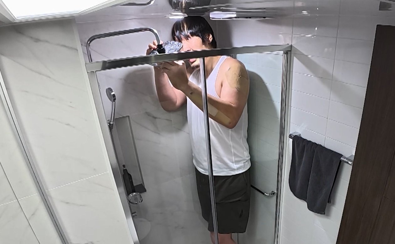 이어, 소인국에 사는 거인에게 또 하나의 시련이 찾아온다. 바로 일명 ‘거인 샤워부스 감금 사건’. 머리를 감기 위해 들어간 샤워부스가 홍만에게는 너무나 꽉 끼었던(?) 것. 허리를 굽히는 것조차 힘든 공간에 몸을 구겨 넣은 그는, 결국 팔을 샤워부스 밖으로 뻗어 자신만의 머리감기 신공을 선보인다. 난생처음 보는 광경에 현장은 그야말로 초토화. 지켜보던 패널들 역시 기함을 토했다는 후문이다. 이 과정에서 천장에 달린 해바라기 샤워헤드 윗부분 먼지까지 청소하는 장면이 포착되며 뜻밖의 웃음을 더한다.