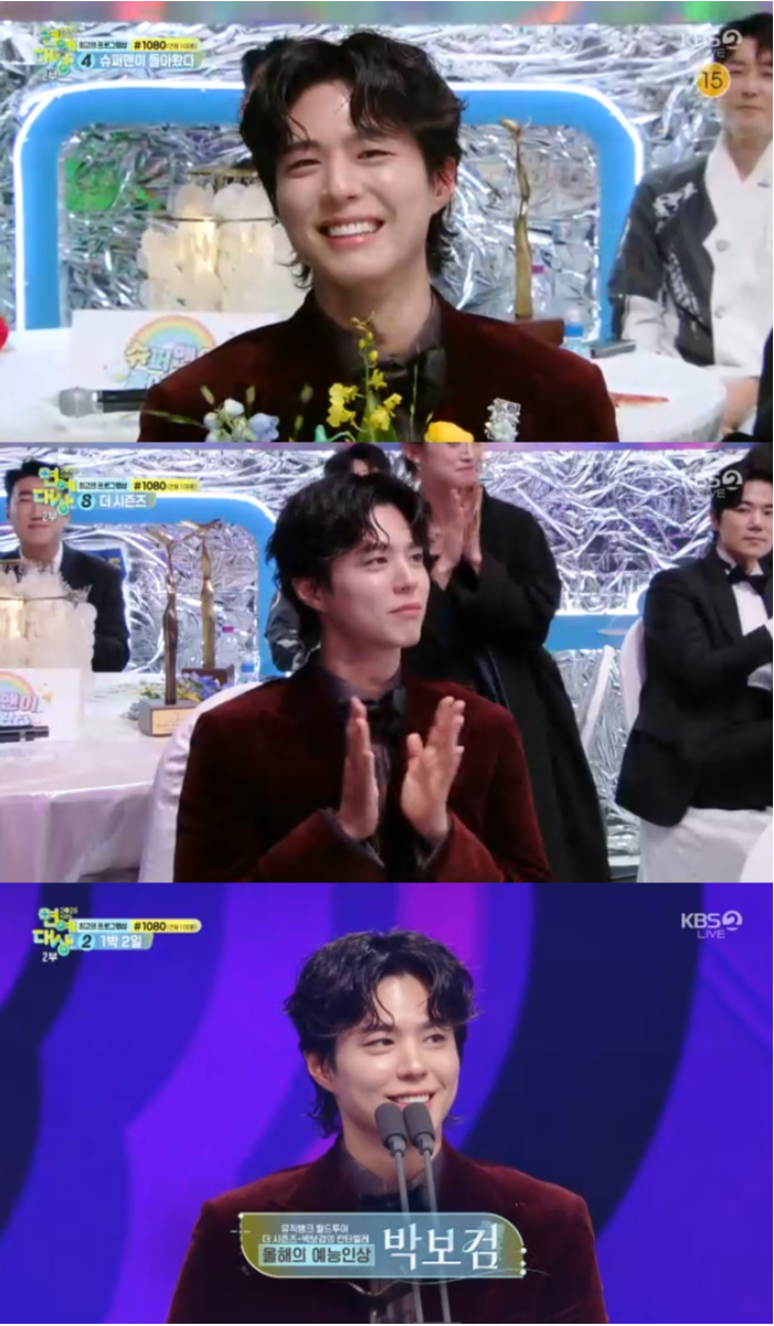 [스포츠동아|이정연 기자] 박보검이 ‘2025 KBS 연예대상’에서 올해의 예능인상을 받으며 ‘뮤직뱅크’와 ‘칸타빌레’로 쌓아온 음악 예능 발자취를 다시 주목받았다.
