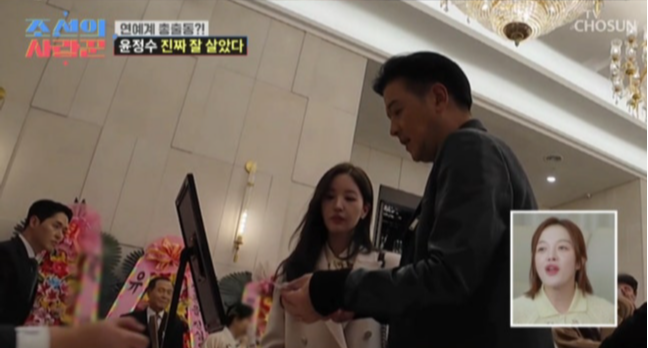 22일 방송된 TV조선 ‘조선의 사랑꾼’에서는 개그맨 윤정수와 방송인 겸 필라테스 강사 원진서의 결혼식 현장이 공개됐고, 이 자리에 류시원이 아내와 함께 하객으로 참석했다.