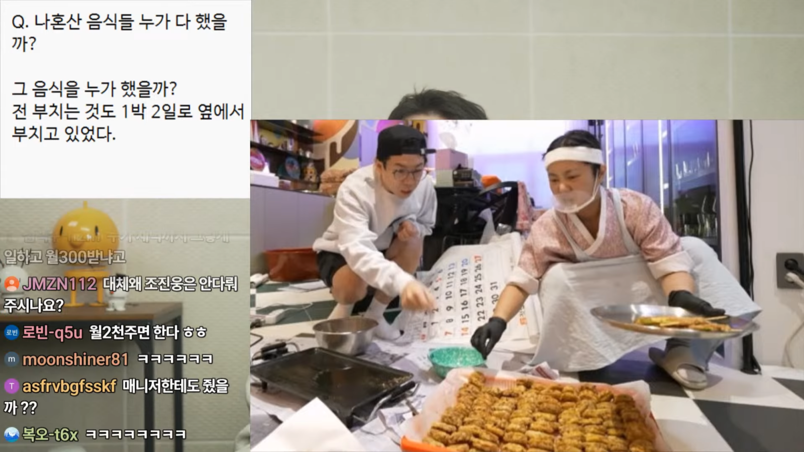 명절 음식 장면에 대해서도 “매니저들이 전날부터 1박 2일 동안 전을 함께 부쳤다고 한다”고 주장했다. 김장 촬영 당시에도 매니저들이 뒤편에서 무와 고춧가루, 마늘 등을 구매하고 찹쌀풀을 준비했다는 설명이 이어졌다.