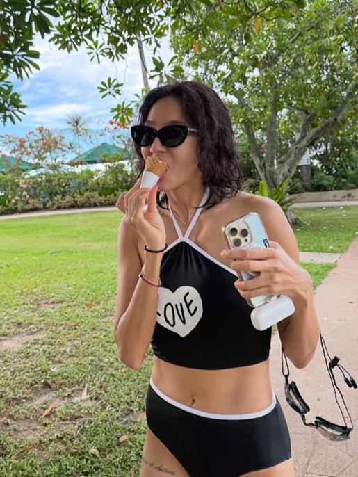 특히 눈길을 끈 것은 탄탄하게 다져진 유이의 바디 라인이다. 군살 없이 정돈된 복근과 허벅지 라인은 꾸준한 운동으로 만들어진 결과를 그대로 보여준다. 과거 ‘꿀벅지’로 불리던 허벅지에는 레터링 타투가 더해져 한층 성숙한 분위기를 자아냈다.