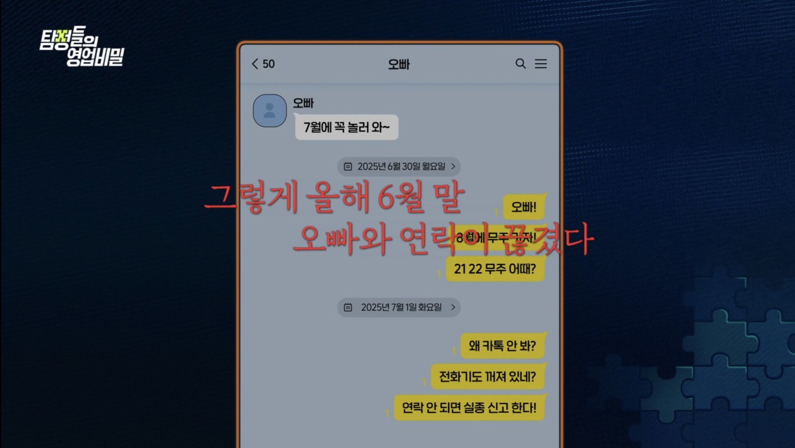 29일 방송된 채널A ‘탐정들의 영업비밀’ 속 ‘탐정 24시’에서는 “가족 같은 14년 지기 오빠가 갑자기 연락 두절됐다”는 여성 의뢰인의 사연이 소개됐다. 의뢰인과 오빠는 2011년 직장에서 만나 이직까지 함께 할 만큼 각별했다. 이후 의뢰인이 창업을 하자, 오빠는 바쁜 시간을 쪼개 일을 도와주러 올 정도로 두터운 인연을 자랑했다. 의뢰인의 아이들과도 스스럼없이 놀아주는 ‘친구 같은 삼촌’이기도 했다.
