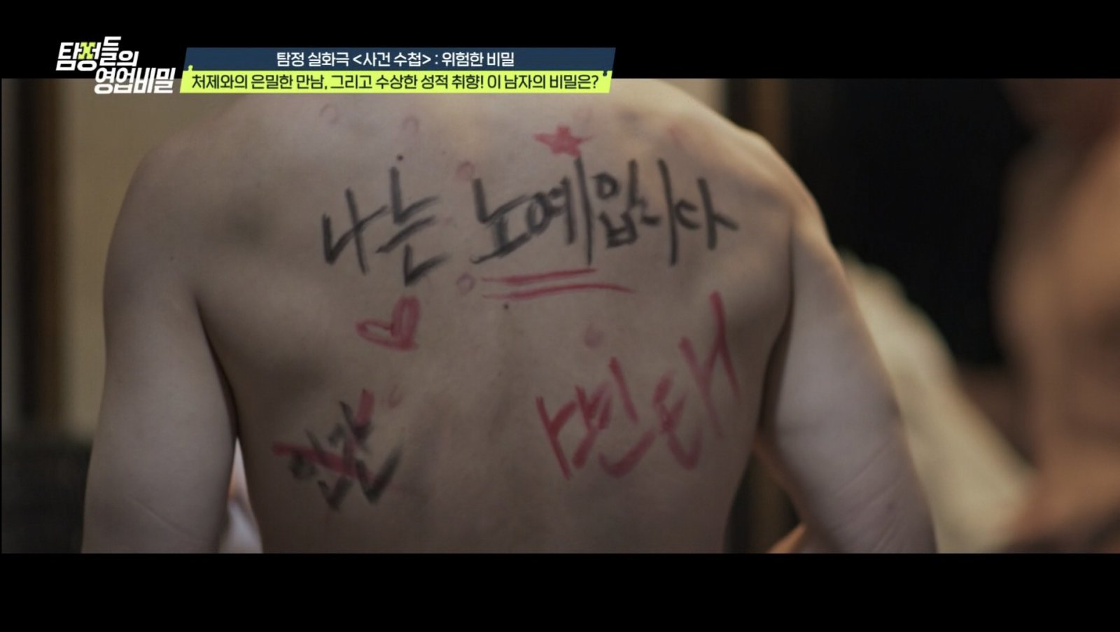 탐정단의 조사 결과, 의뢰인의 오빠는 주말마다 처가에서 운영하는 식당에 들러 일을 돕고 있었다. 유독 친근해 보이는 처제와의 관계가 의심을 샀지만, 진실은 전혀 다른 곳에 있었다. 어느 날, 의뢰인의 오빠가 야근 도중 여자 화장실에 들어가 여성용 속옷을 입고 나오는 모습이 포착됐다. 나아가 의뢰인의 브래지어를 훔쳐 입고 셀카를 찍는 경악스러운 행동이 연이어 목격됐다. 그의 몸에는 맞은 상처와 함께 “나는 노예입니다”라는 글씨까지 쓰여있었다.