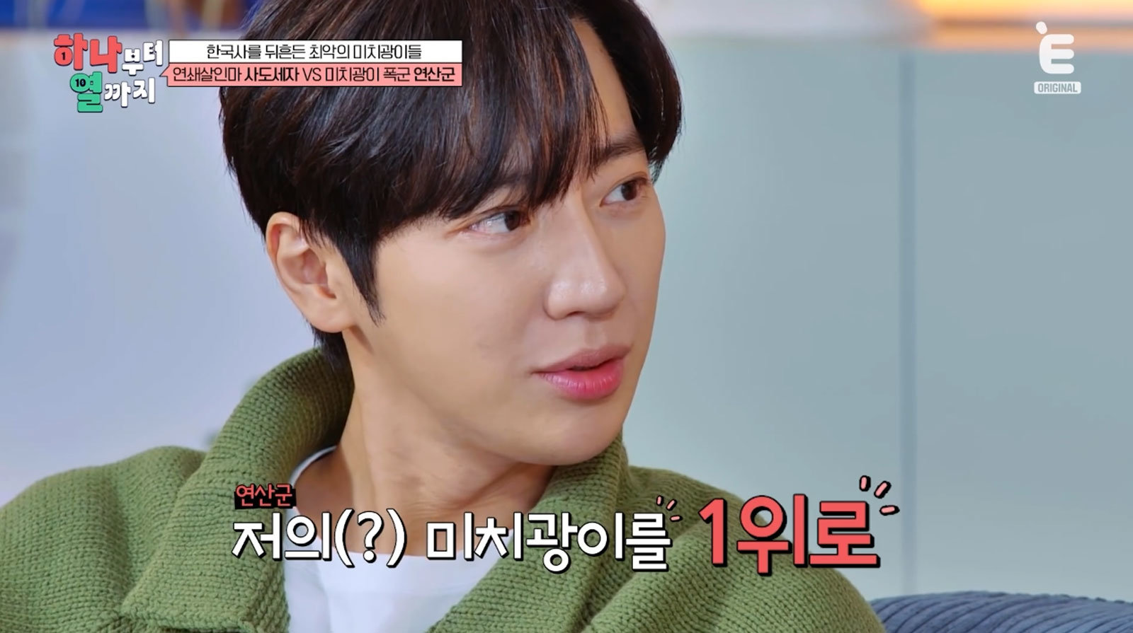 장성규·이상엽의 순위 쟁탈 차트쇼 ‘하나부터 열까지’가 사도세자, 천추태후, 이의민을 ‘한국사 최악의 미치광이’ TOP3로 선정했다.